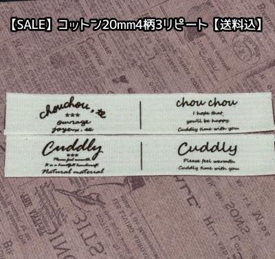 ◯[送料無料]【\1200→\580→】限定品◯20mm幅/コットン・文字4柄各3リピートセット♪